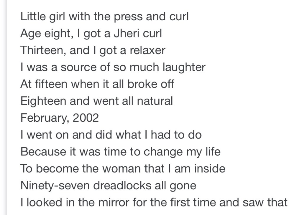 I remember how my mom would sit me down with the hot comb and press my hair until it was straight. She used to tell me not to get my hair dirty when I would go outside and play. I started getting relaxers when I was of age and I remember how that “white creamy crack” would irritate my scalp often leaving chemical burns. I didn’t understand why it was necessary to put chemicals in my hair to make it look opposite of what God blessed me to have. As I got older, I jumped on the bandwagon and voluntarily started relaxing my own hair as I was conditioned to do since the age of 12.